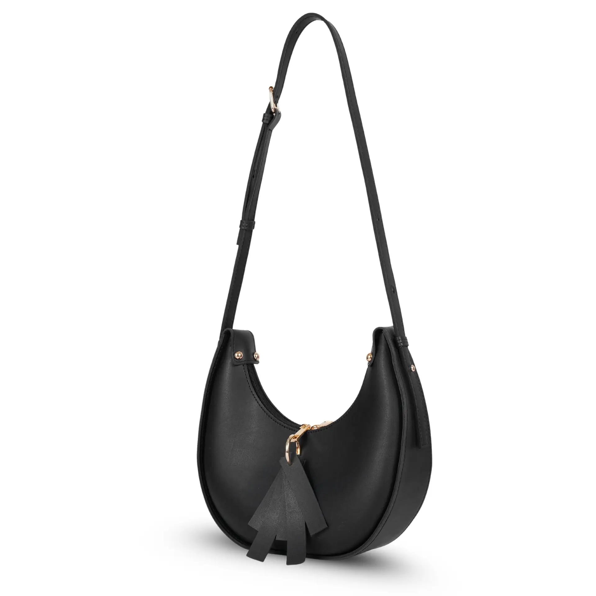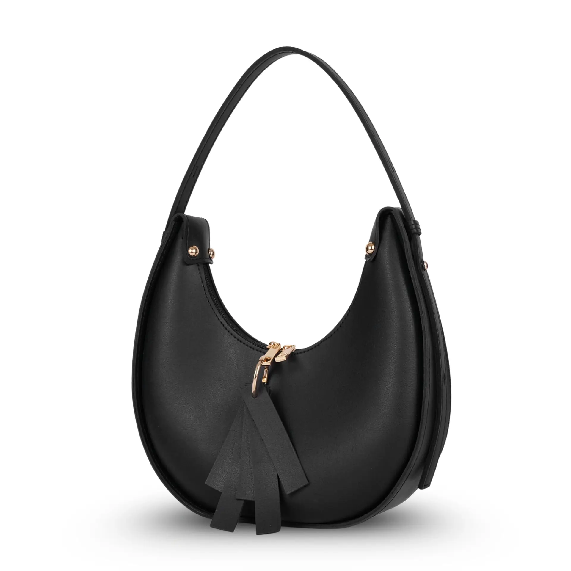 Step up your style game with the Hobo Bag Black, designed for women who love timeless elegance with a modern twist. Made from premium faux leather, this bag boasts a chic crescent silhouette, sleek black finish, and gold-tone accents with a stylish tassel zipper detail.