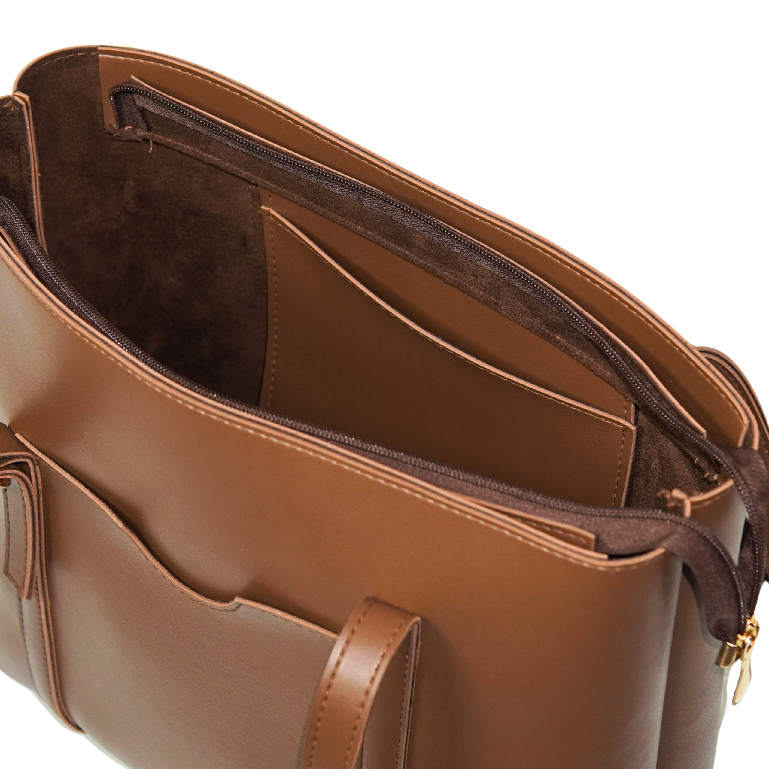 The Shoulder Bag Brown is crafted for women who want both space and style in one elegant accessory. Designed with clean lines and a spacious interior, this ladies’ tote bag is ideal for carrying daily essentials — whether you’re heading to the office, university, or on a weekend getaway. Made from durable leather with strong shoulder straps, it offers functionality without compromising on fashion. The neutral tone and structured design make it easy to pair with both formal and casual outfits.